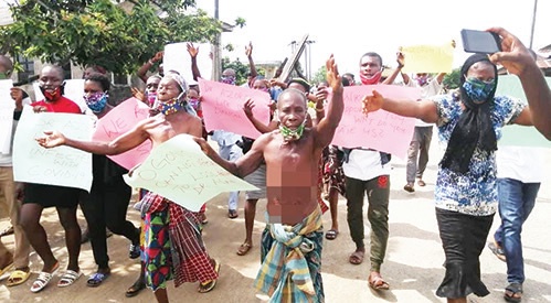 A group of Ogoni women from the Khana Local Government Area of Rivers State, on Tuesday, protested semi-nude over the continued detention of their son and manager of the demolished Prodest Hotel, Dr Bariledum Azoroh.